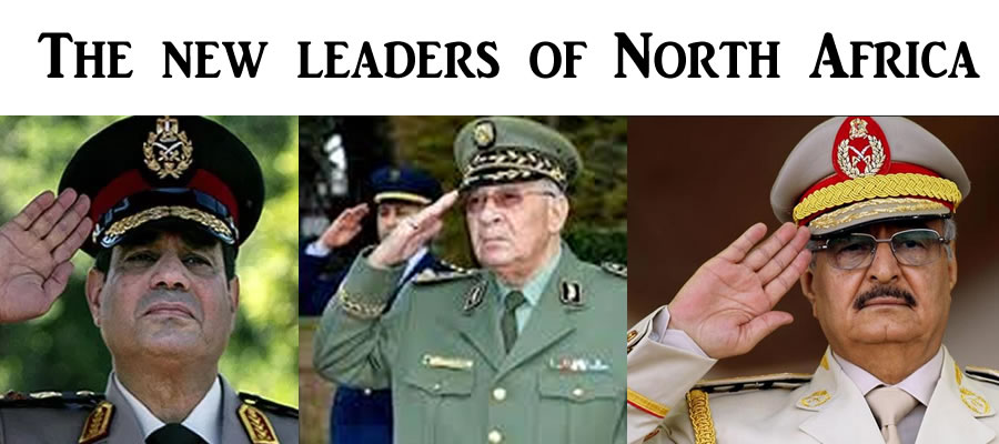 North Africa’s new leaders: military chiefs Sisi of Egypt (left), Gaid Salah of Algeria (center) and Khalifa Haftar of Libya (right)